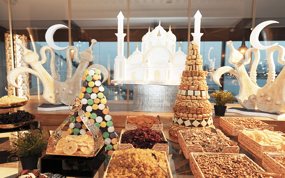 Guests are invited to break their fast with a generous buffet showcasing traditional Arabic and Mediterranean flavors, celebrating the essence of the Holy Month. The Iftar begins with traditional dates and dried fruits, complemented by classic Ramadan juices, freshly baked breads, and warm soups that provide a gentle introduction to the meal. A generous mezzeh selection follows, featuring hot and cold Arabic favorites crafted to reflect warmth, depth, and tradition.