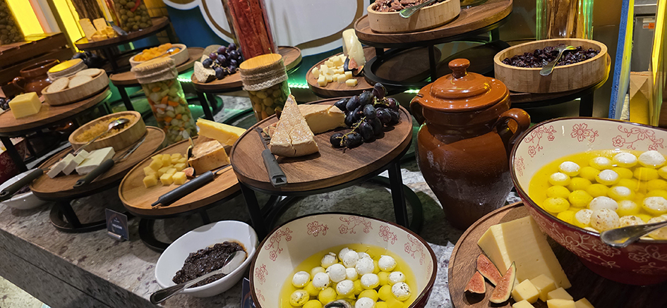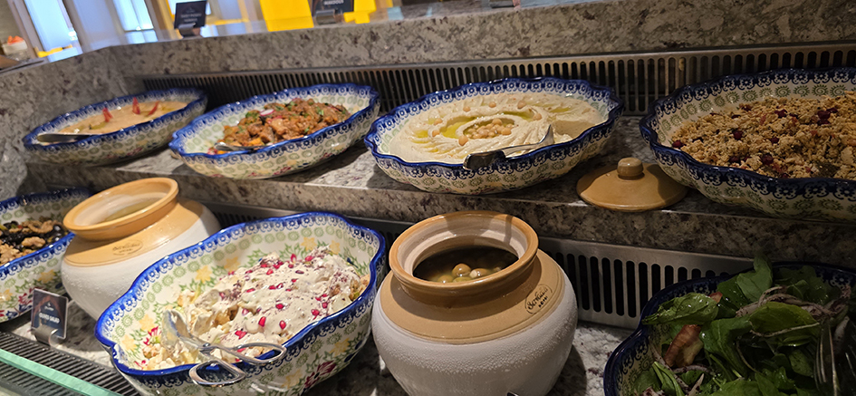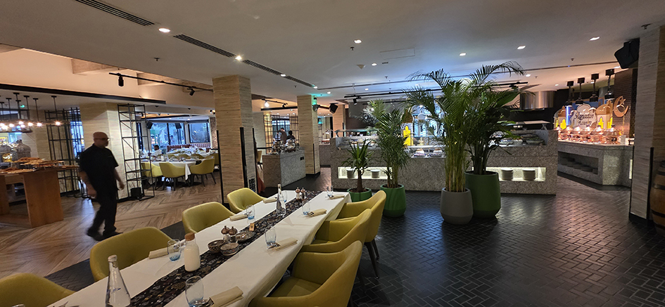 The space feels lively without being overwhelming. There’s that classic hotel-buffet buzz: families greeting each other, friends negotiating table space, the quiet excitement that comes with breaking your fast. It’s comfortable, not flashy. You won’t find dramatic chandeliers or theatrical décor, but you will find a warm, easygoing atmosphere that makes you want to settle in.